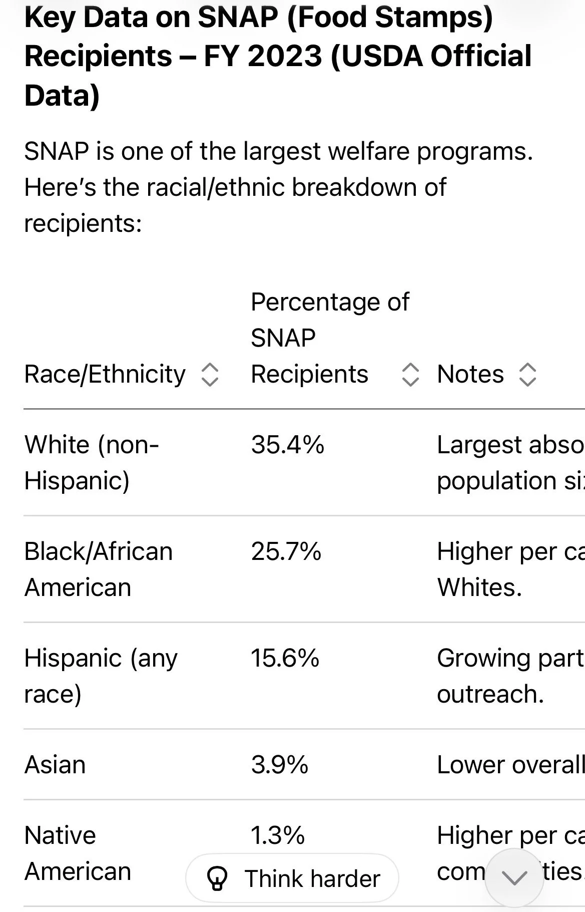 • SNAP 受益人构成(个人;约 17% 的种族未知):