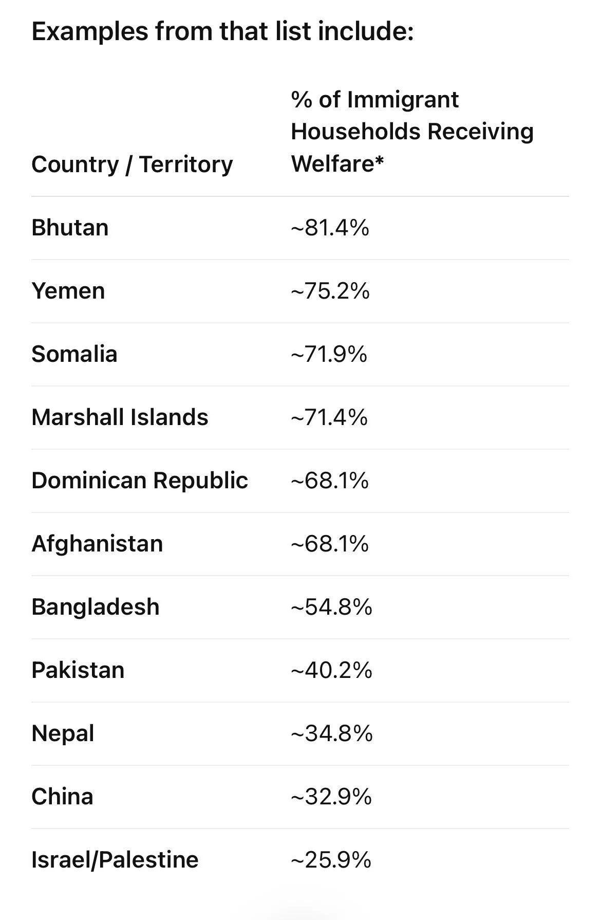 近日,美国总统 Donald Trump 在 Truth Social 上发布了一张有关“不同地区移民领取联邦福利比例”的数据图表。图表显示,来自部分非洲国家以及穆斯林背景地区的移民,领取福利的比例高达 60%—近 80%。该信息迅速在网络上传播,也引发了大量针对移民的激烈言论。
